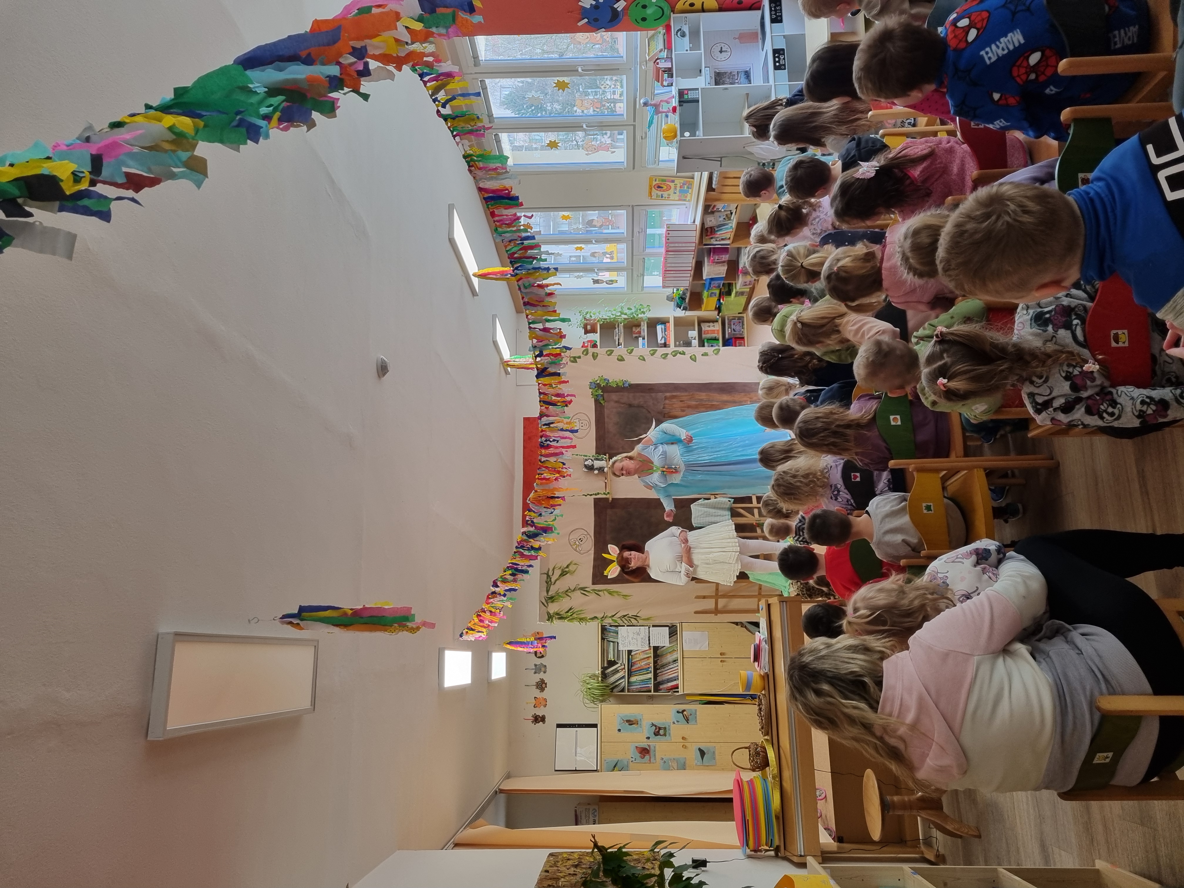 Do naší mateřské školy zavítalo Divadlo Okýnko s veselým velikonočním představením o víle Píšťalce, kozičce a beránkovi, kteří společně objevovali kouzlo Velikonoc. Děti se prostřednictvím vtipného příběhu dozvěděly o velikonočních tradicích a symbolech jara. Představení bylo plné písniček, humoru a zapojování dětí do děje, takže si ho malí diváci velmi užili. Dopoledne se neslo v radostné a sváteční atmosféře a děkujeme Divadlu Okýnko za krásný kulturní zážitek.