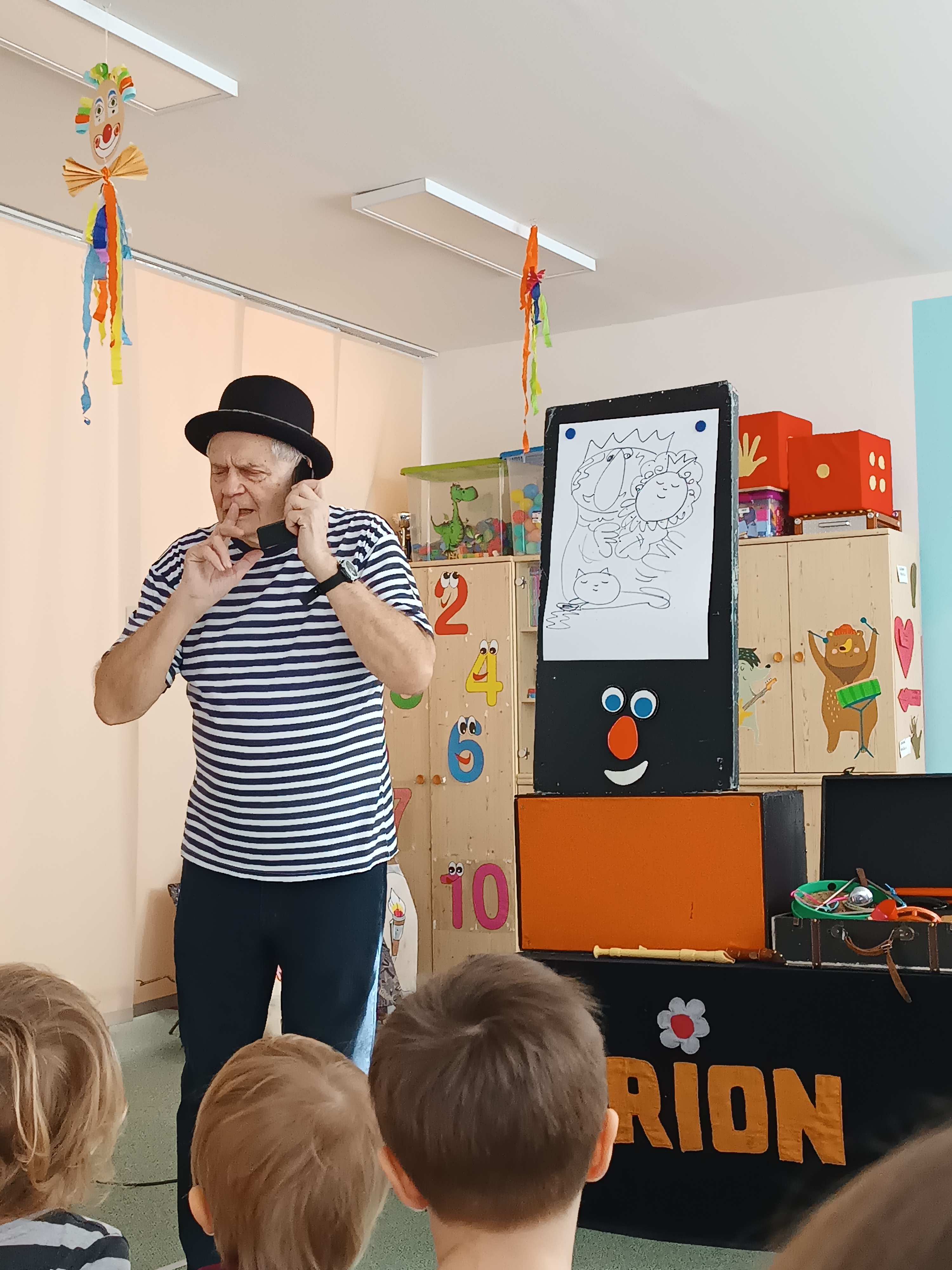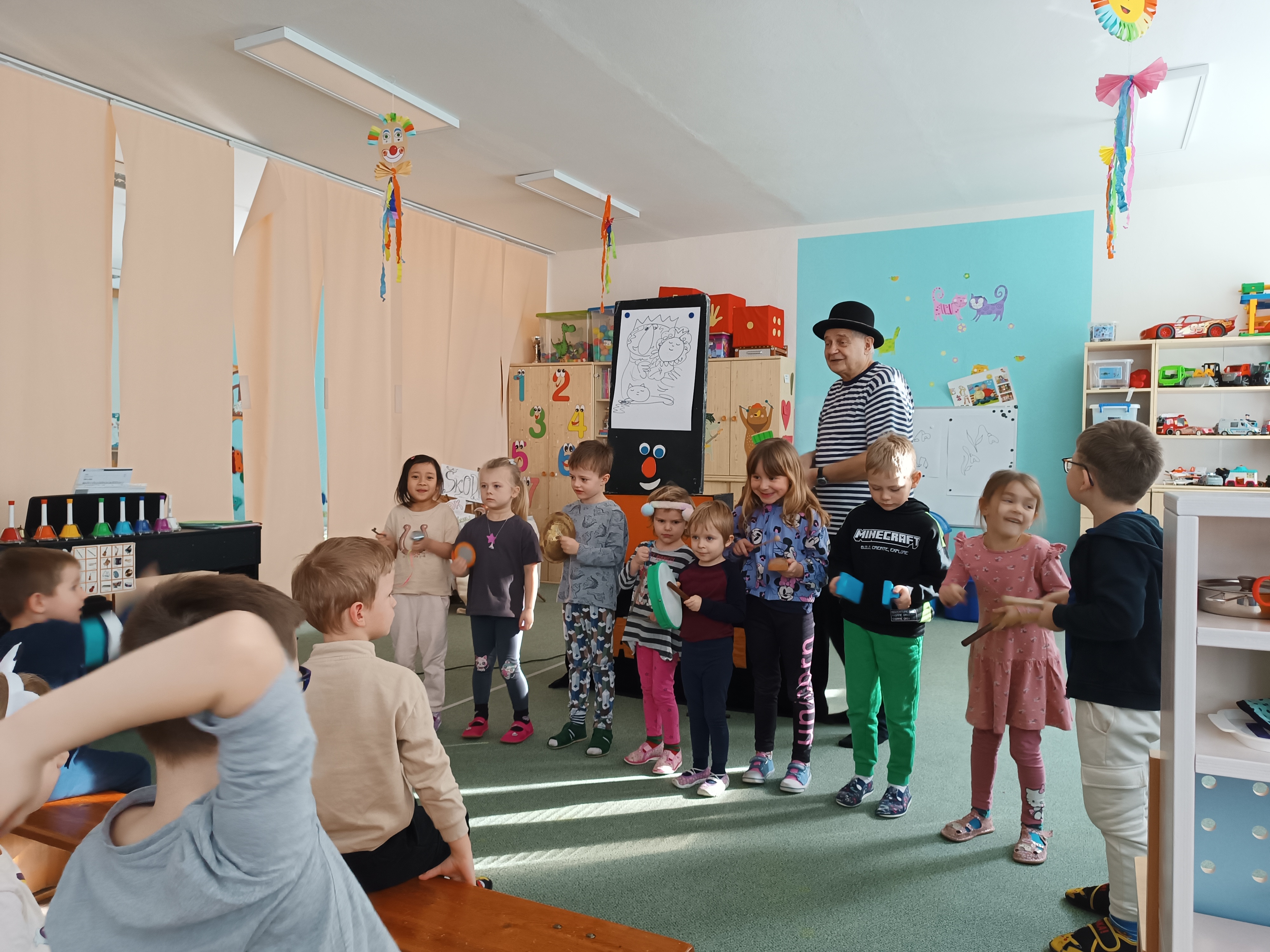 Do naší mateřské školy zavítal pan Karel Daňhel s hudebně-dramatickým vystoupením. Děti si společně zazpívaly veselé písničky, učily se vnímat rytmus a aktivně se zapojovaly do programu. Celé vystoupení bylo provázáno legračním příběhem, který děti velmi bavil. Společně s panem Daňhelem dokonce vymyslely i úplně novou písničku. Dopoledne plné hudby a smíchu si děti moc užily.
