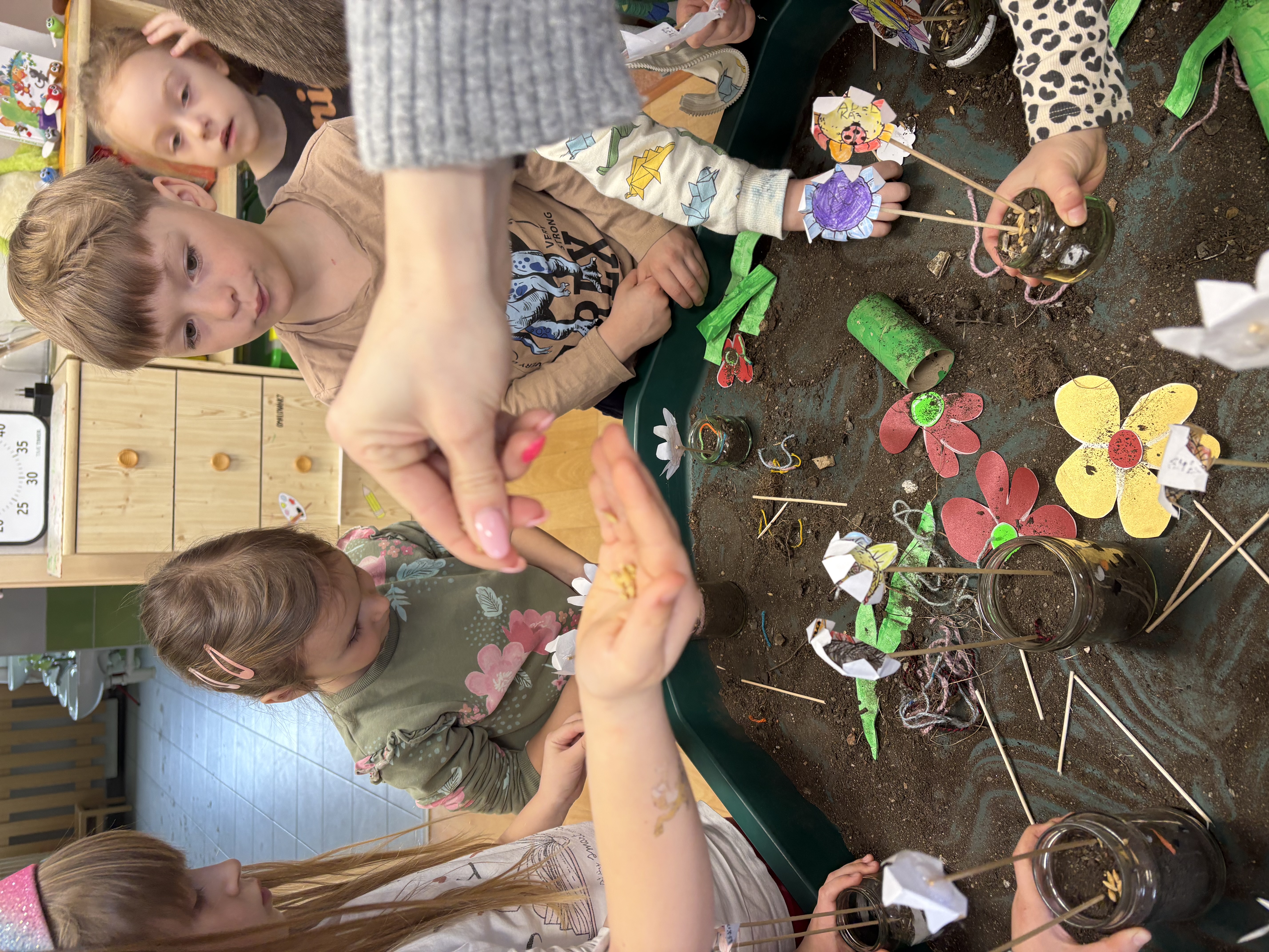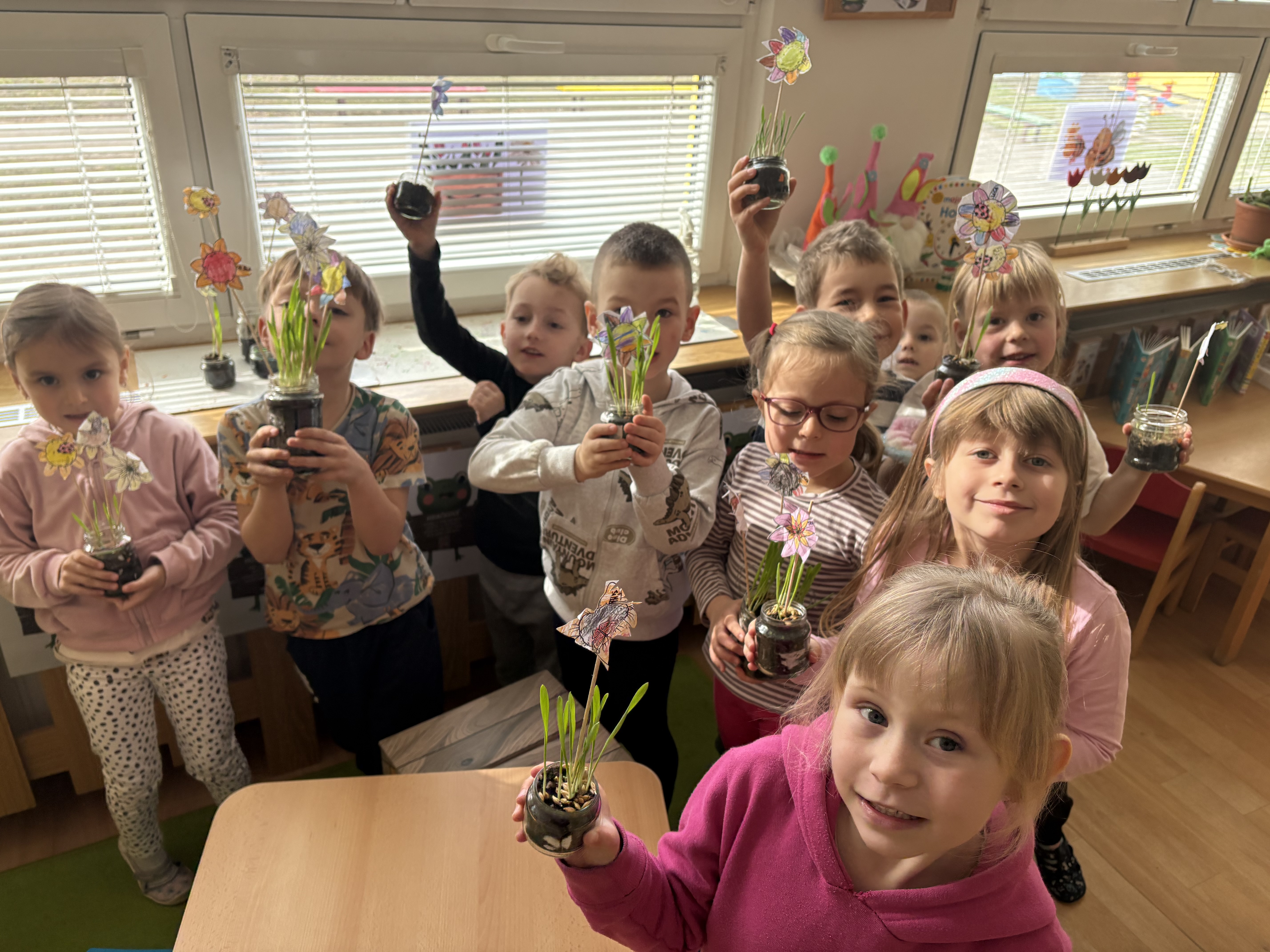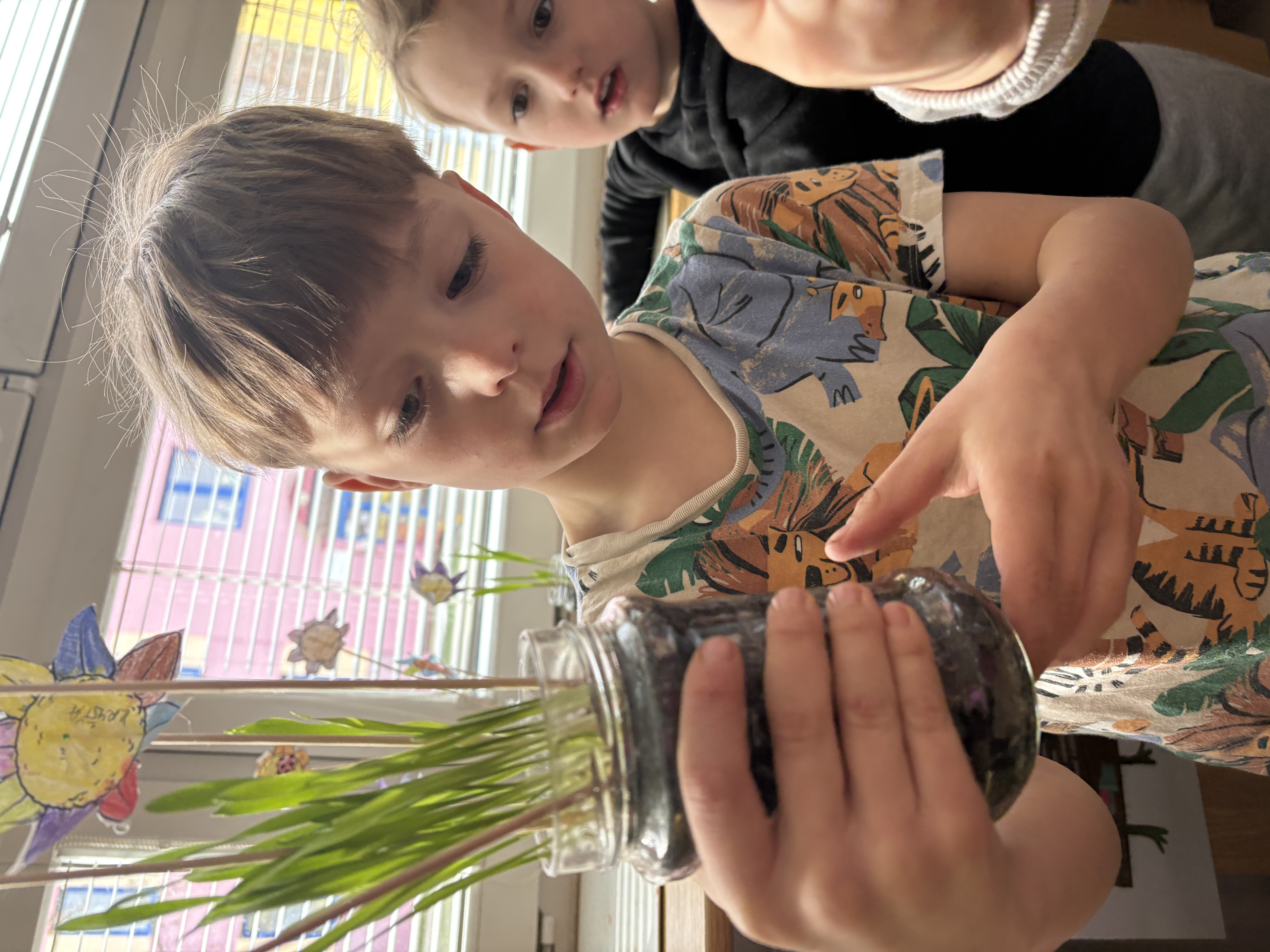 Děti ze třídy Žabiček zasazovaly osení do hlíny, zalévaly ho a pozorovaly jeho růst. Při této činnosti rozvíjely jemnou motoriku, trpělivost a vztah k přírodě a práce je velmi bavila.