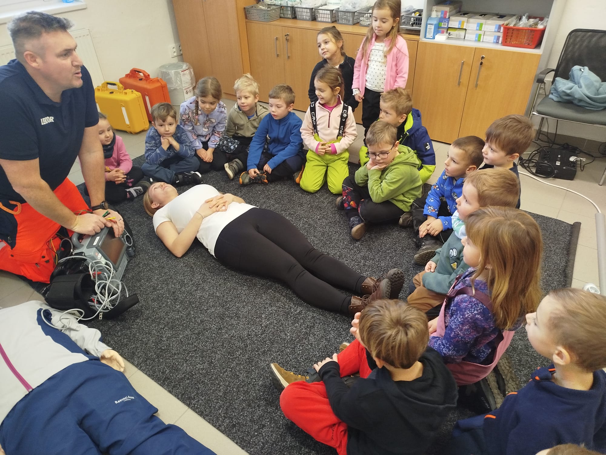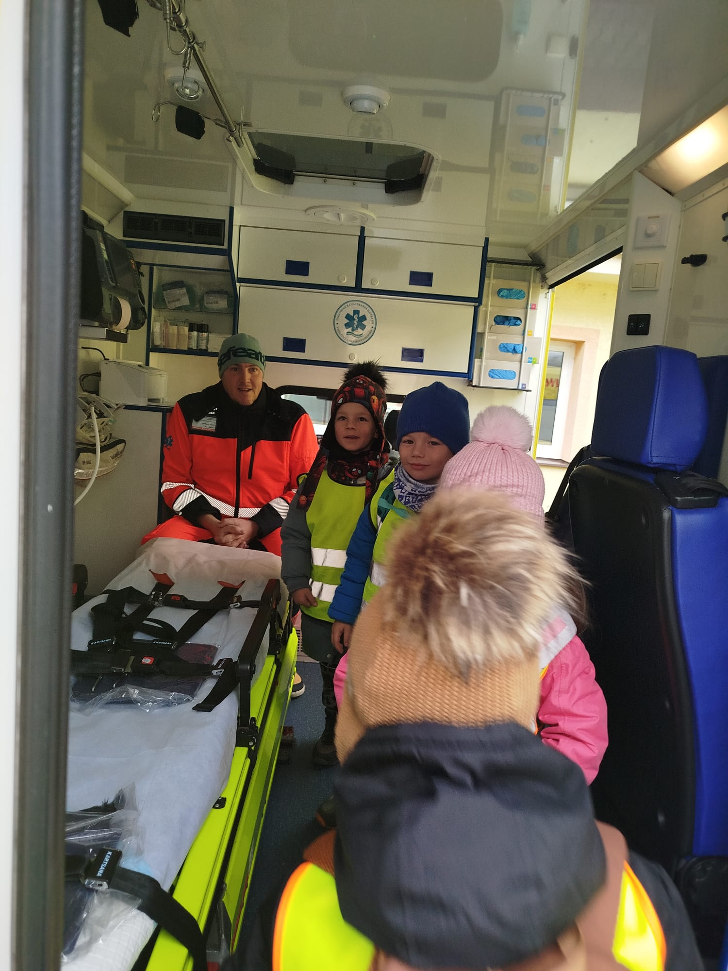 S předškoláky jsme se vydaly na exkurzi ZZS. Děti i paní učitelky se od záchranáře Filipa dozvěděly zajímavosti spojené s povoláním zdravotníka. V kvízu otestovaly své znalosti a díky dobrovolné asistenci paní učitelky mohly vidět, jak funguje EKG. Nechyběla ani prohlídka sanitky a pexeso, jako odměna na závěr. Moc děkujeme a těšíme se na další setkání!