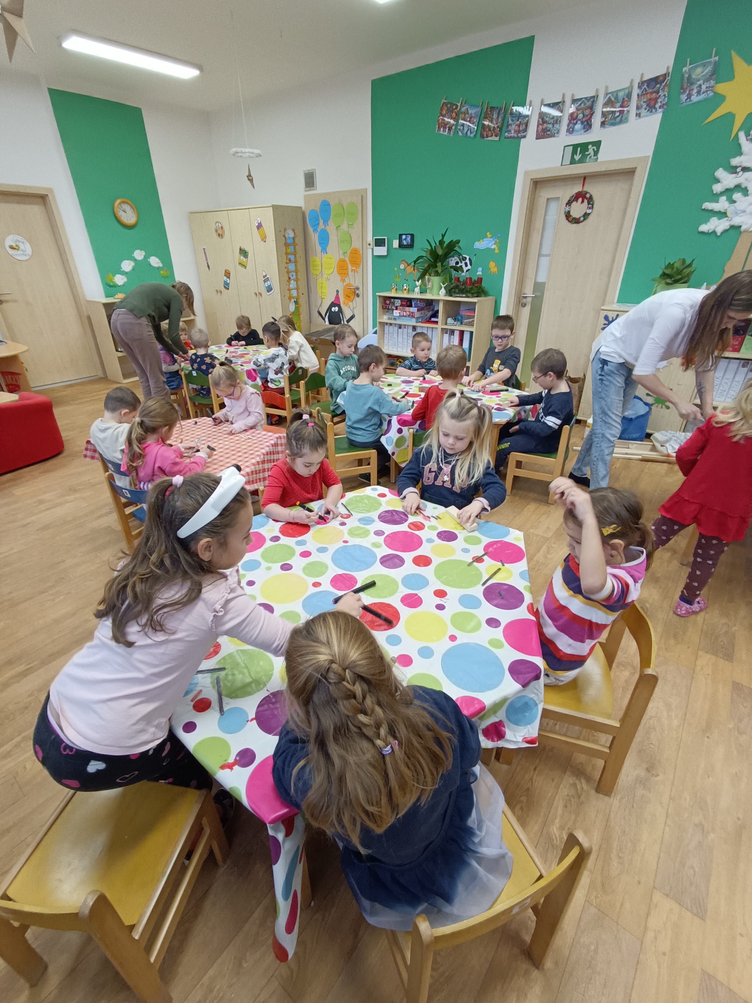 Do školky zavítala paní truhlářka, se kterou si děti vyrobily dva krásné dřevěné vánoční výrobky. Každý si mohl vyzkoušet jednoduchou práci se dřevem, ozdobit si svůj výrobek a odnést si ho domů. Tvoření probíhalo v příjemné atmosféře a děti měly radost, že dokázaly vytvořit něco vlastníma rukama.