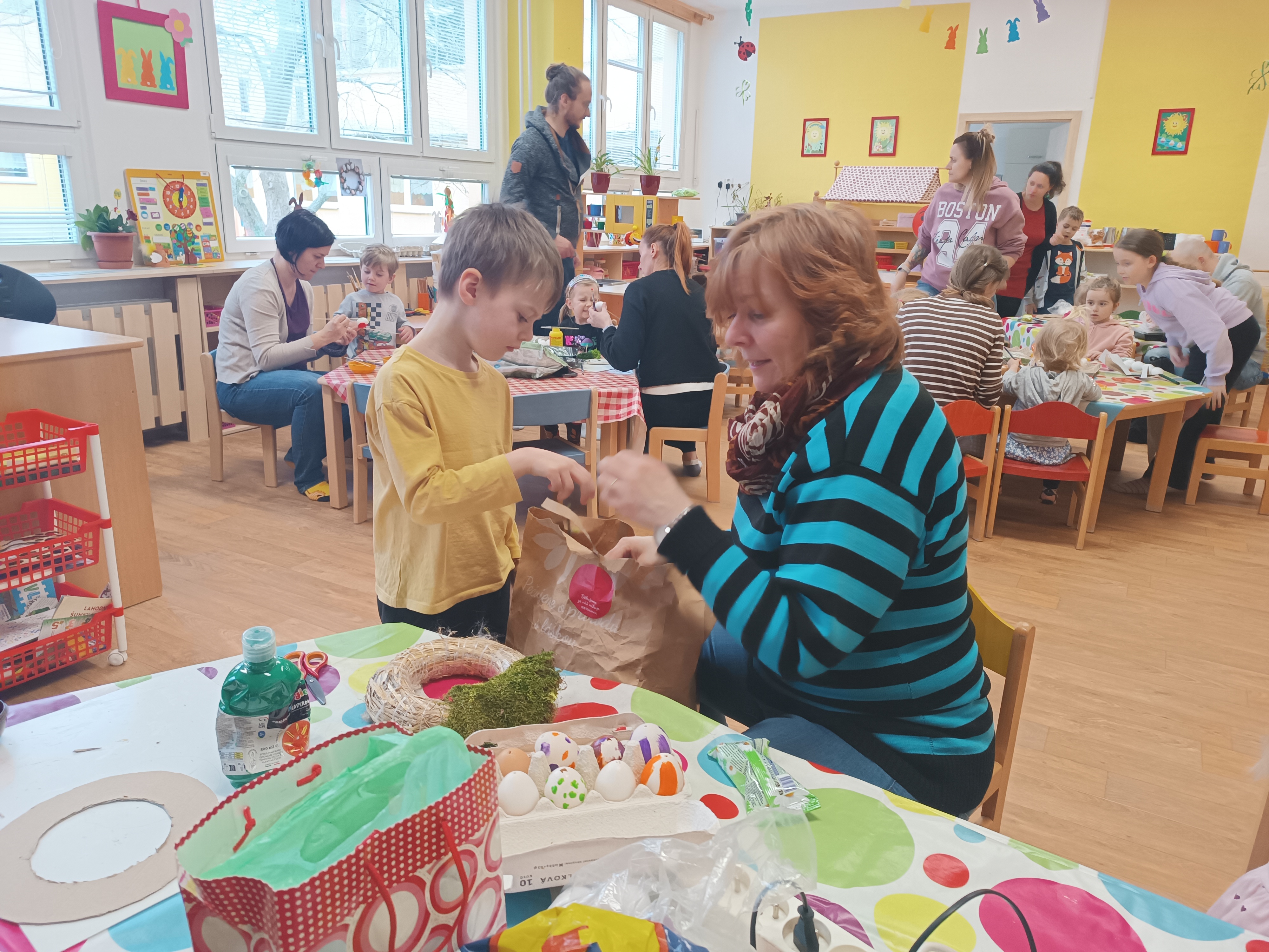 Ve třídě Berušek proběhlo velikonoční tvoření, při kterém děti společně se svými rodiči i prarodiči vyráběly jarní věnečky z vajíček. Příjemnou atmosféru celého odpoledne doplnila vůně kávy a sladkého velikonočního beránka.
