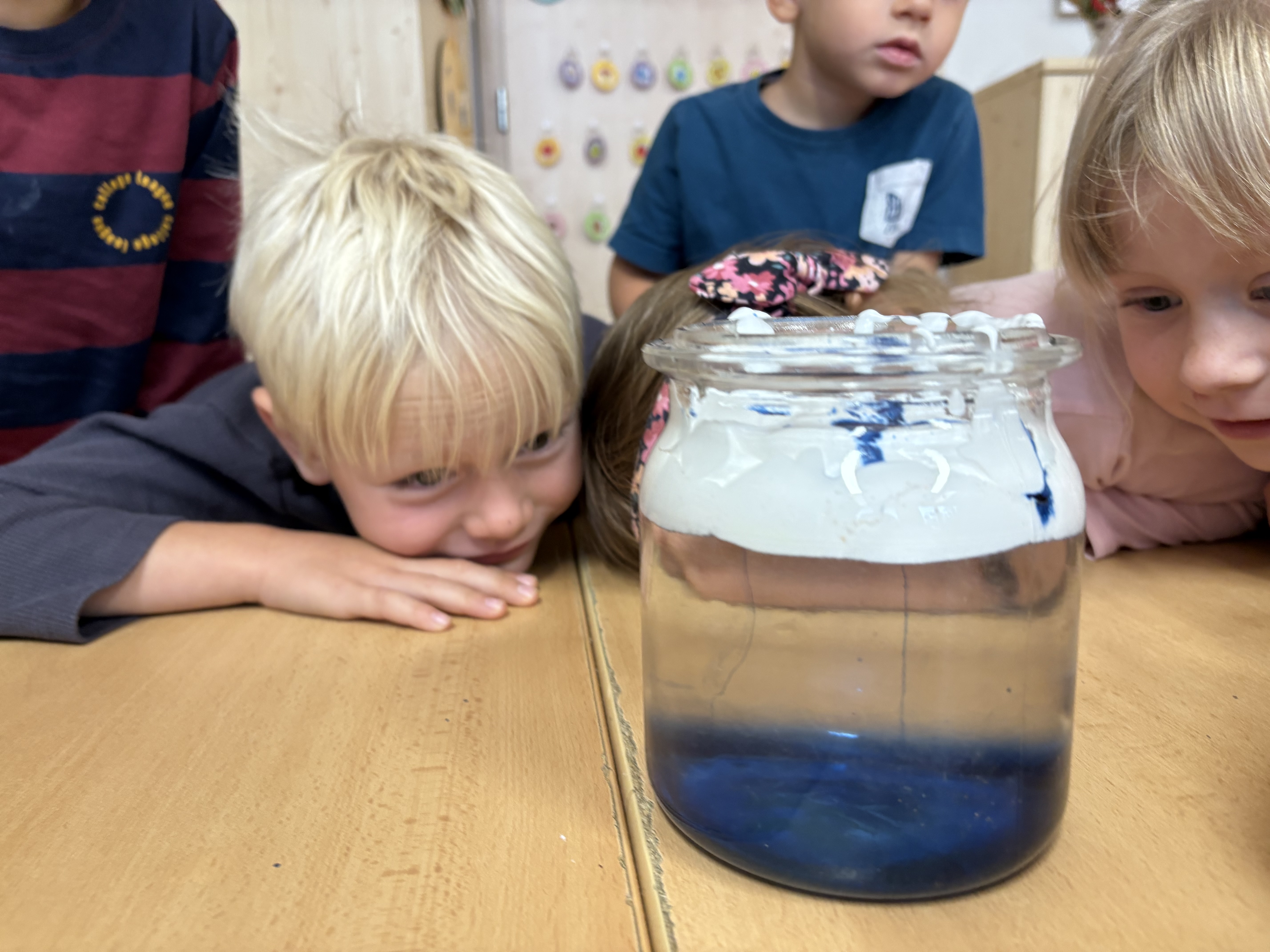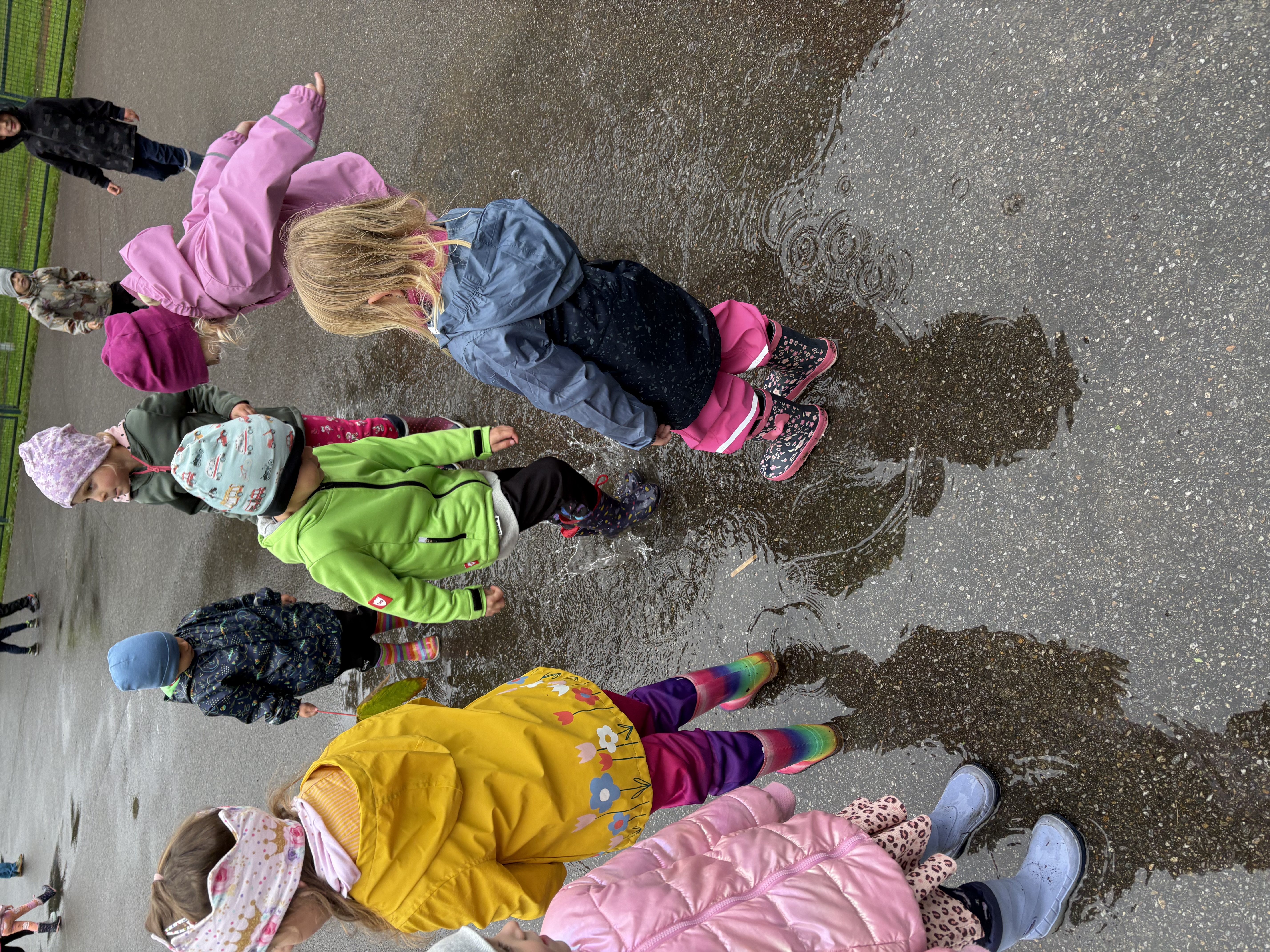 Děti si vyzkoušely pokus, jak z mraků padá déšť, pomocí pěny na holení, vody a potravinářského barviva. Pozorovaly, jak "prší" skrz pěnový mrak a pochopily, co způsobuje déšť. Aktivita byla pro děti zábavná, rozvíjela jejich pozorovací schopnosti a podporovala jejich zvědavost o počasí.