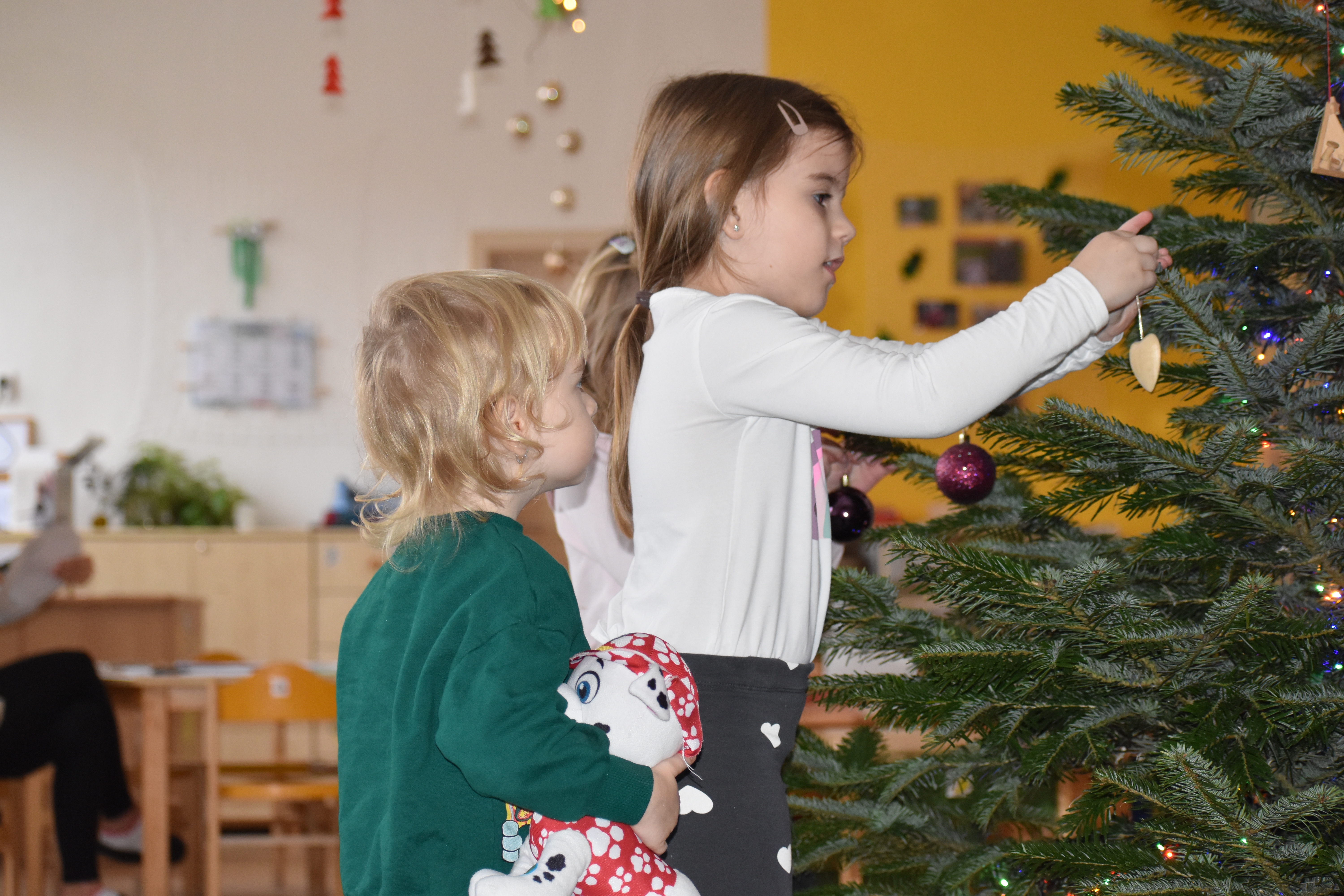 Děti si s nadšením vyzkoušely zdobení vánočního stromečku a několikrát se ve zdobení střídaly. Z ozdobeného stromku měly obrovskou radost a už se těší na Ježíška a vánoční radovánky. Celý den byl plný smíchu a sváteční pohody.
